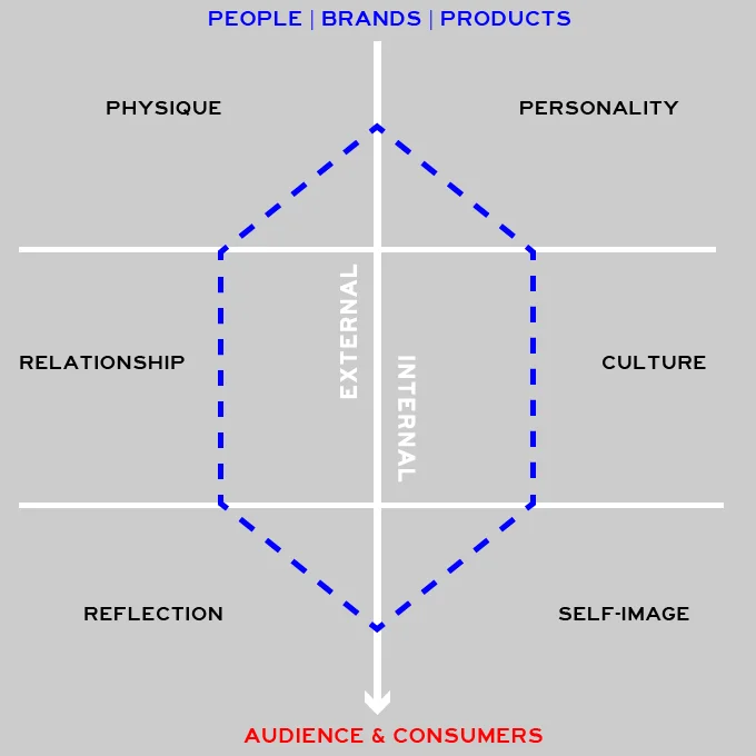 The L3V1 profile applies human traits to a brand to better identify how an audience (fans, consumers, general public, et al) actually experiences the brand. The L3V1 prism, as the name suggests comes in the form a prism with 6 different traits at each end of the prism.